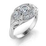 Antique Inspired Three Stone Diamonds Ring